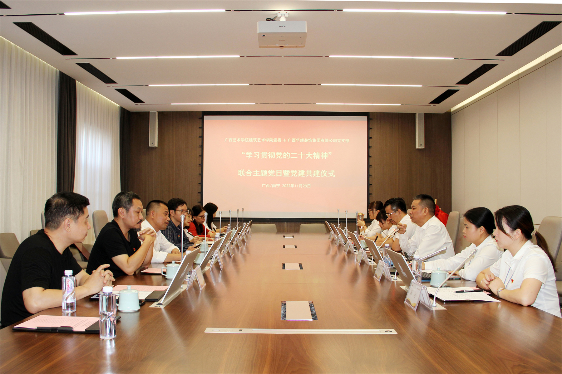 2022年11月28日,广西艺术学院建筑艺术学院党委与广西开元在线登录,开元(中国)有限公司党支部,开展“学习贯彻党的二十大精神”联合主题党日暨党建共建仪式;同时,广西艺术学院建筑艺术学院与广西开元在线登录,开元(中国)有限公司,举行了“联合共建校外实践教育基地”揭牌仪式。