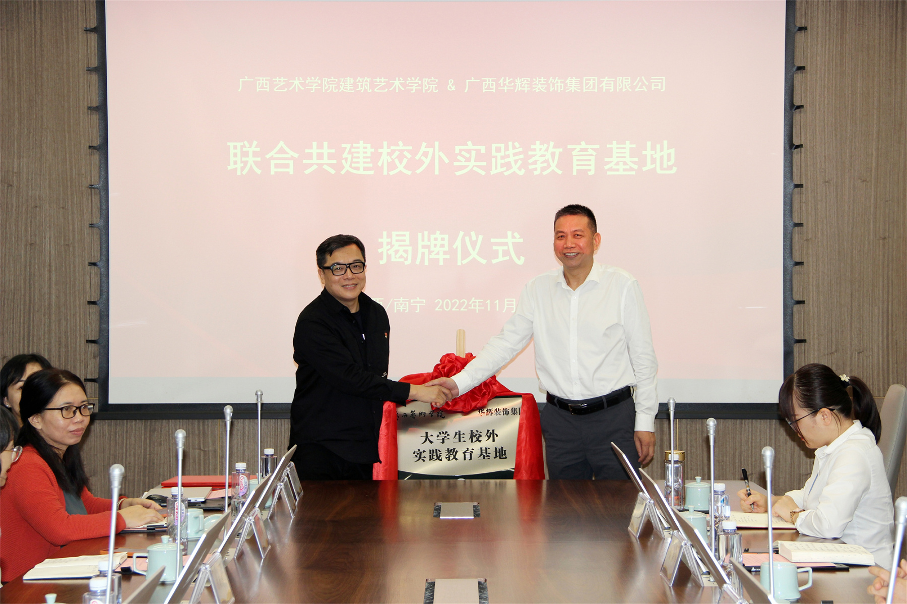 紧接着,广西艺术学院建筑艺术学院院长林海、开元在线登录,开元(中国)董事长杨景忠,共同为“联合共建校外实践教育基地”揭牌。