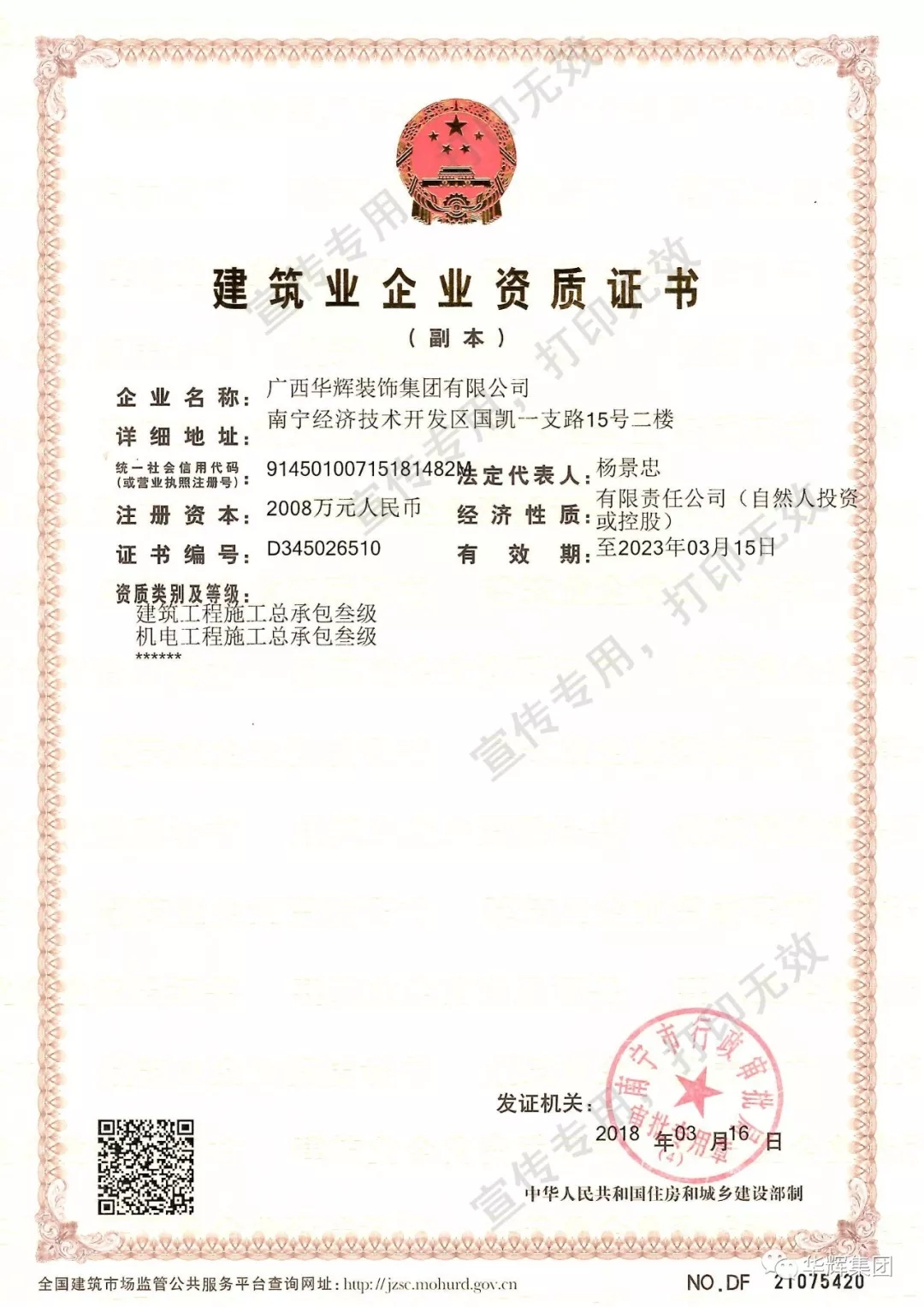 近日,在集团全体员工的团结协作、共同努力下,开元在线登录,开元(中国)获得建筑工程施工总承包叁级资质、机电工程施工总承包叁级资质!