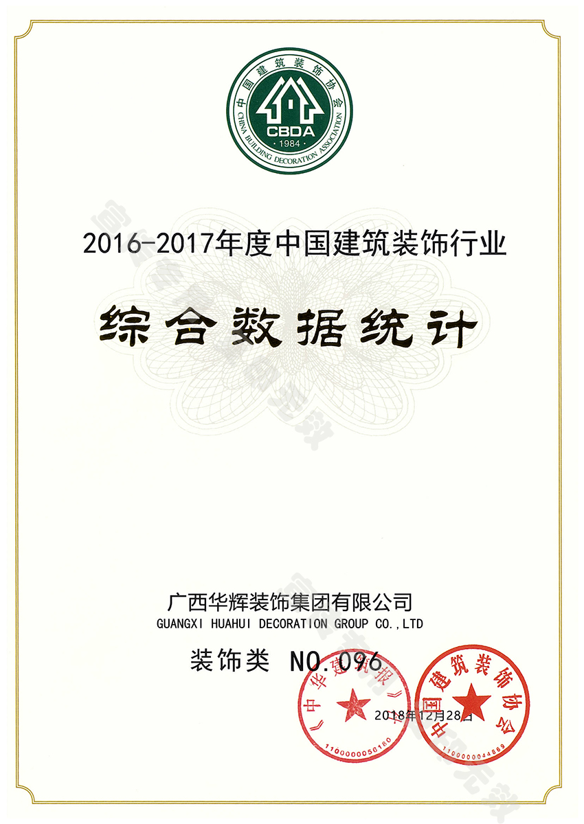 2019年1月9日,2016-2017年度中国建筑装饰行业综合数据统计结果揭晓,开元在线登录,开元(中国)凭借强劲的综合实力,先进的施工技艺,优秀的管理能力,荣获中国建筑装饰行业百强企业。