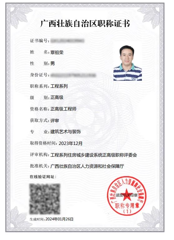 经2023年广西工程系列住房城乡建设行业正高级职称评委会评审,华辉集团副总裁覃祖荣获评工程系列住房城乡建设系统正高级职称。