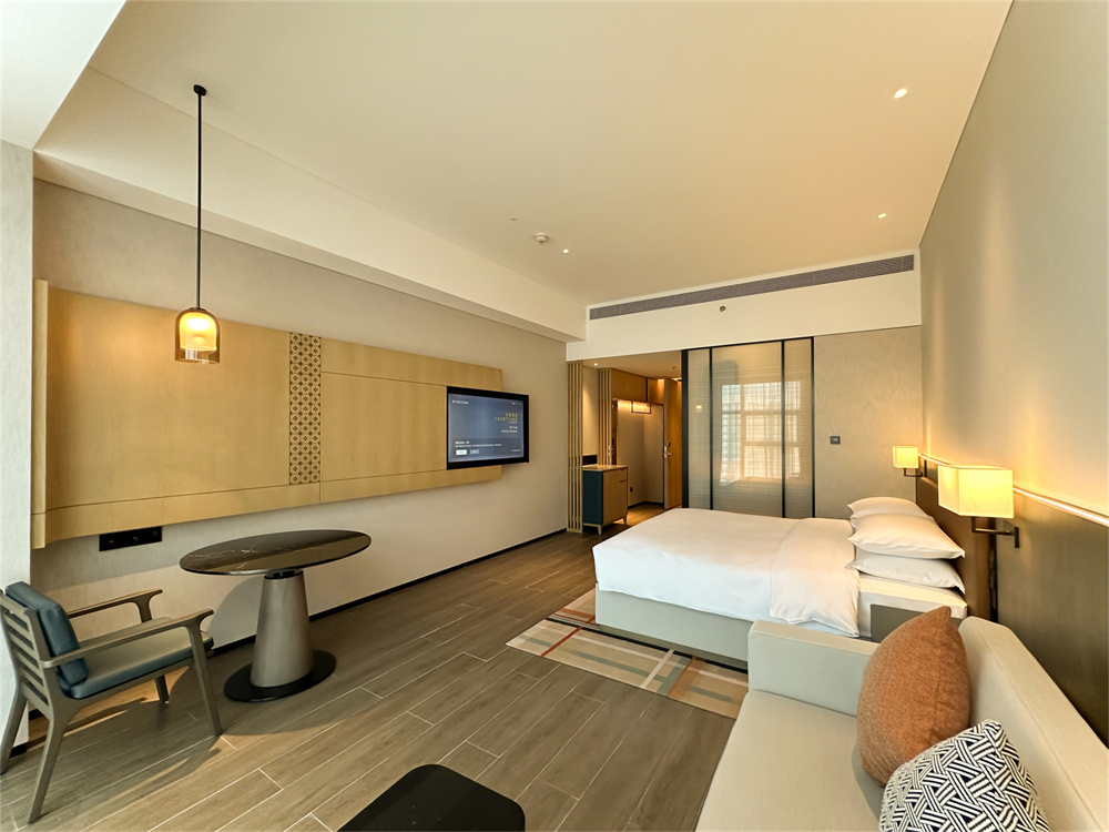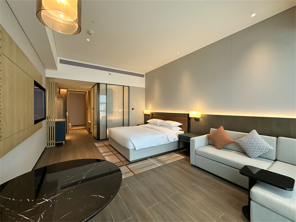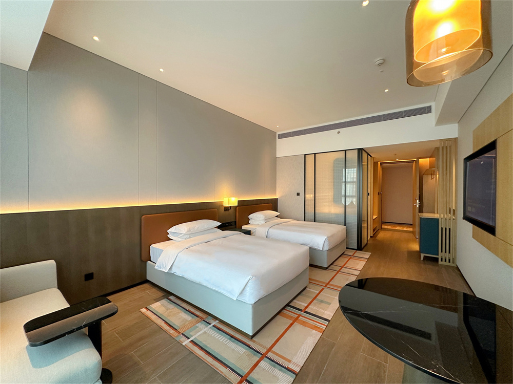 2024年9月22日,由华辉装饰承接的南宁五象万怡酒店正式开门纳客。万怡酒店是万豪国际集团(Marriott International)旗下,以高效办公和愉悦休闲的环境设计而闻名的商务酒店品牌,遍布全球35个国家和地区,拥有超过850家分店,开业40多年以来,万怡酒店始终致力于为客人打造卓越的住宿体验。